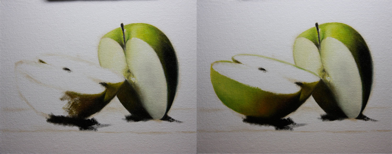 منصوفة, الزيتية, بالألوان, تفاحة, خطوات, رسم |