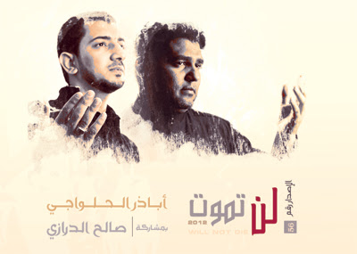 ![]() إصدار : لن تموت أداء : أباذر الحلواجي و بمشاركة صالح الدرازي شُعراء العمل : غازي العابد - علي غريب - راضي الفيصلي - حسين سلمان - حسن حبيل - مجتبى التتان الهندسة الصوتية : حسام يسري إنتاج : تسجيلات الأسراء إعداد و إخراج : جراح الحسيني مراجعة القصائد لغوياً لوضعها هنا : حسين حبيب آل إبراهيم لن تموت - للشاعر غازي العابد ارسلي يا كربلا ذاك القماط .. واصنعي منه شرايين الصراط كفني كل شهيد مات في .. عصرنا في كربلا و النجفي واجعلي من خرقة الطفل ربا .. وإنسجيها فوق جرحٍ لا يخا دثرينا تحت رايات الهدى .. إننا بالقوة العظمى نحا نستمد العون من كل شهيد .. من دمٍ يشخب من كل وريد يا حسين دمعة العشق تموت .. و اليتامى في أراضيك تموت كُلَّنا يا سيدي فيك نموت .. قد أرادونا جميعاً أن نموت إنك الساكِن فينا لن تموت .. لن تموت لن تموت لن تموت لن تموت لن تموت لن تموت .. لن تموت لن تموت لن تموت إنهم ظنوا ستصدى بالوهن .. أو يجفُ العشق من ذاك السكن يجهلون أنك المٌنشئ في .. كلِّ قلبٍ طاهرٍ أغلى وطن رشحةٌ منك إلى غور دمي .. تلهب الحس فأنت ملهمي أنت فينا شمعةٌ لن تنطفي .. إنك أعظمٌ من أن تختفي أنت عرشٌ في قلوب العاشقين .. فاز من والاك في دنيا و دين إنك المحفوظ في قلب السماء ... لن تواريك اهتزازات السنين لا تظن الموت موتًا لِلشهيد ... إنما الموت لأصناف يزيد ربما الشمس توارى في الغروب .. ربما الأزهار من قطف تموت ربما الآمال بالقهر تذوب .. ربما في الأفق نجمٌ قد يموت لكن الحسين باقيٍ لن يموت .. لن يموت لن يموت لن يموت لن يموت لن يموت لن يموت.. لن يموت لن يموت لن يموت سوف يبقى خالداً رغم الزمن .. يلهب الأجيال من كل الأمم يكتب التاريخ في آفاقنا .. صفحة بالنحر والأخرى بدم ارسلي يا كربلا ذاك القماط .. واصنعي منه شرايين الصراط طفل حسين ظامي - للشاعر علي غريب هذا الماي طامي .. طفل حسين ضامي قوم أنهض يا عباس .. طفل حسين ضامي راعي الباس .. يا عباس .. أني زينب يبو النخوة من نهر قوم .. ترى القوم .. ما خلو هالطفل يروا جيبي له ماي .. يا حماي .. و شوف بالضمى شسوا للخيم عود .. بلا وعود .. لَهالأطفال وهالنسوة حق الخيام حامي .. حق الخيام حامي قوم أنهض يا عباس .. طفل حسين ضامي هذا الماي طامي .. طفل حسين ضامي قوم أنهض يا عباس .. طفل حسين ضامي وهو مطروح .. وإلى الروح .. تجاوب لَخته عذريني يا ختي هالدين .. بالإيدين .. تقطع بينچ و بيني لا تلومين .. هاليمين .. وهاليسار أقطعوا إيديني رأسي من صاب .. سهم صاب .. يا خيا وعدچ بعيني مين يرعى أيتامي .. مين يرعى أيتامي قوم أنهض يا عباس .. طفل حسين ضامي هذا الماي طامي .. طفل حسين ضامي قوم أنهض يا عباس .. طفل حسين ضامي خويا شيدوم .. يجيدوم .. بعد عينك يا والينا و العلم مال .. بالآمال .. و مالت كل آمانينا يا بدر تام .. للأيتام .. خسوفك شلعمل بينا و أنتا مصيوب .. يا مهيوب .. من بعدك يبارينا يالمطروح دامي .. يالمطروح دامي قوم أنهض يا عباس .. طفل حسين ضامي هذا الماي طامي .. طفل حسين ضامي قوم أنهض يا عباس .. طفل حسين ضامي يا ختي لو كان .. بالأمكان .. من الشاطي إلچ أرجع ما أخليچ .. و أريد لچ .. ولا يجري إلچ مدمع بس على إيدين .. هاليدين .. فدا دين الله تتقطع جودي من راح .. بالجراح .. تصوب وعدي للرضع دمع العين هامي . . دمع العين هامي قوم أنهض يا عباس .. طفل حسين ضامي هذا الماي طامي .. طفل حسين ضامي قوم أنهض يا عباس .. طفل حسين ضامي قالت محال .. في هالحال .. أخليك آنا يالغالي و أرحل بلاك .. و لولاك .. اموت بحسرة آمالي ليت أداويك .. و أراويك .. من دموعي و دلالي چيف أراضيك .. و أراضيك .. بعيدة عني يالوالي ضاعت أحلامي .. ضاعت أحلامي قوم أنهض يا عباس .. طفل حسين ضامي هذا الماي طامي .. طفل حسين ضامي قوم أنهض يا عباس .. طفل حسين ضامي گلها ياريت .. تواريت .. و لا أشوفچ بهالمنظر وحدچ ألحين .. تروحين .. إلى الشام ويا هالعسكر مصرعي ثار .. بالإيثار .. اريد أنهض إلچ و ما أقدر بلا ذراعين .. و لا عين .. و رأسي دامي مطبر يا سور أيايمي .. يا سور أيامي قوم أنهض يا عباس .. طفل حسين ضامي هذا الماي طامي .. طفل حسين ضامي قوم أنهض يا عباس .. طفل حسين ضامي ساكن